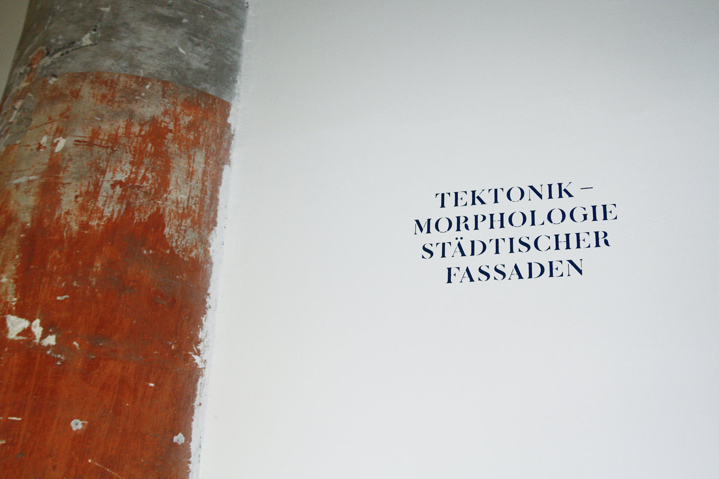 ‘There are shared common associations with architects and stencils, part of the attraction being that stencils appear built and engineered. The zinc stencils (still) manufactured by Thévenon & Cie are now emblematic of Corbusier. More significantly, stencils have traditionally been used as a convenient and economical form of “public lettering” as “everyday letters” (literally “lettres à jour”, through which you see daylight when held up). More crucially on a practical level for our exhibition design, here is a letterform perfectly suited to signage and public notices of a temporary nature. When applied as a stencil there’s a painterly quality that can’t be matched by vinyl. It seems likely the Nizioleti stencil system dates from Napolean’s occupation, and we see similar typeforms produced by Jean Gabriel Bery in Paris from c.1781. There are the inevitable variations in letterform through time too. Our stencil was far from a faithful revival or reflection (that would be the ultimate narcissistic action in this most vain of cities). Through a process of reflection and refraction we produced a letterform that was similar but not the same. We picked and mixed those characters that suited us, focusing on those with the highest frequency in the title, selecting an “O” with a perverse double cut, and an “R” with a loose curled tail (clipped from the mane of St Mark’s lion).’ (Extract from John Morgan, Common Ground, A letter from Venice, Eye magazine blog, 2012)