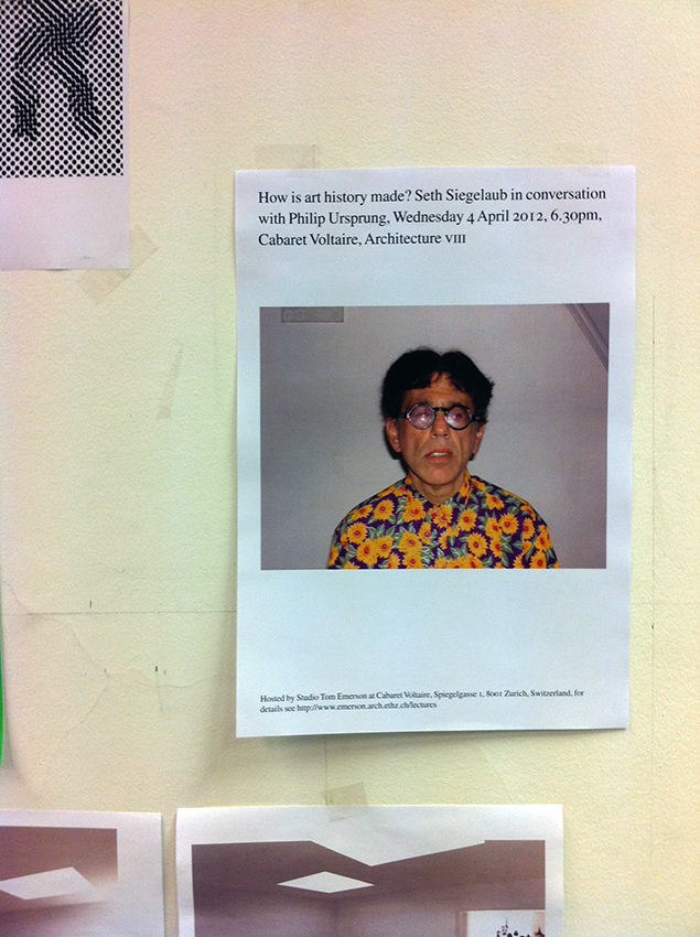 with Philip Ursprung, Wednesday 4 April 2012, Cabaret Voltaire (poster by the studio for Studio Tom Emerson, ETH Zurich).