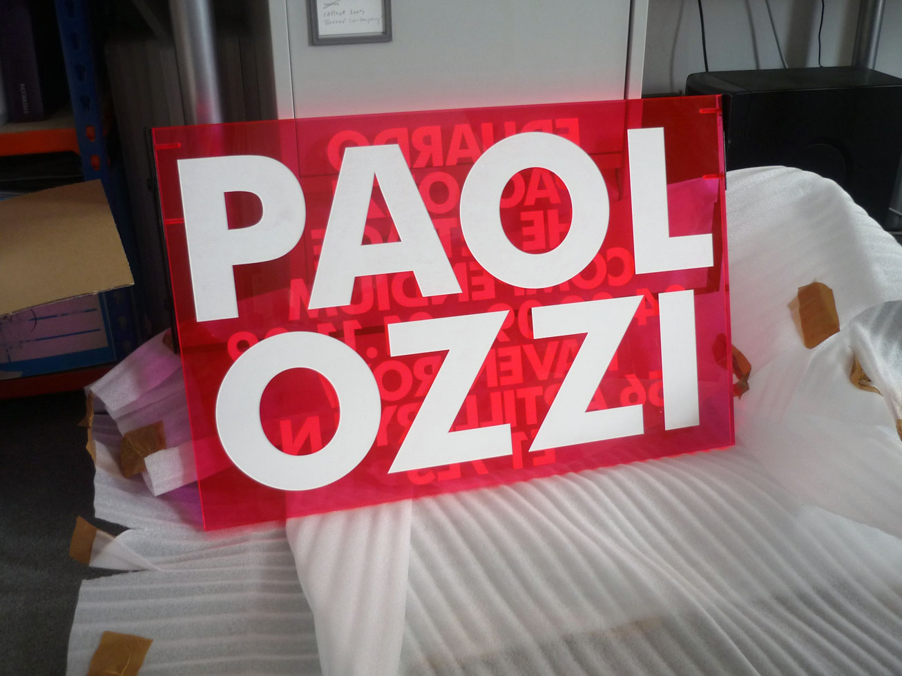 Testing the LED display for Neil Bartlett's contribution to the Institute of Sexology exhibition.