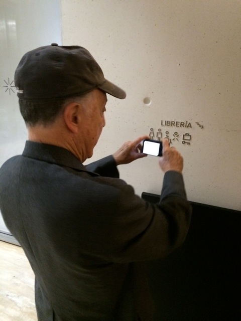 Lance Wyman (designer of the Mexico 68 Olympic logo) taking a picture of our signage in Museo Jumex, Mexico City. Thanks to Andy Butler from designboom for the photograph.