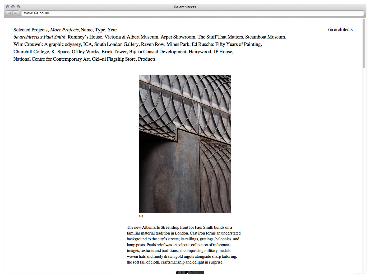 ‘6a architects was founded by Tom Emerson and Stephanie Macdonald in 2001 after meeting at the Royal College of Art and has become one of the leading architectural practices in the UK. The practice has developed a particular reputation for award winning contemporary art galleries, educational and residential projects in sensitive historic environments. Recent projects include the critically acclaimed extension to the South London Gallery (New London Architecture Award 2011 and Civic Trust Award Commendation 2012), and Raven Row, a contemporary art gallery in Spitalfields, east London. In May 2011 Raven Row won an RIBA Award, was nominated for the Stirling Prize and was the only UK project selected by the Design Museum for the Brit Insurance Design Award.’ (6a architects)