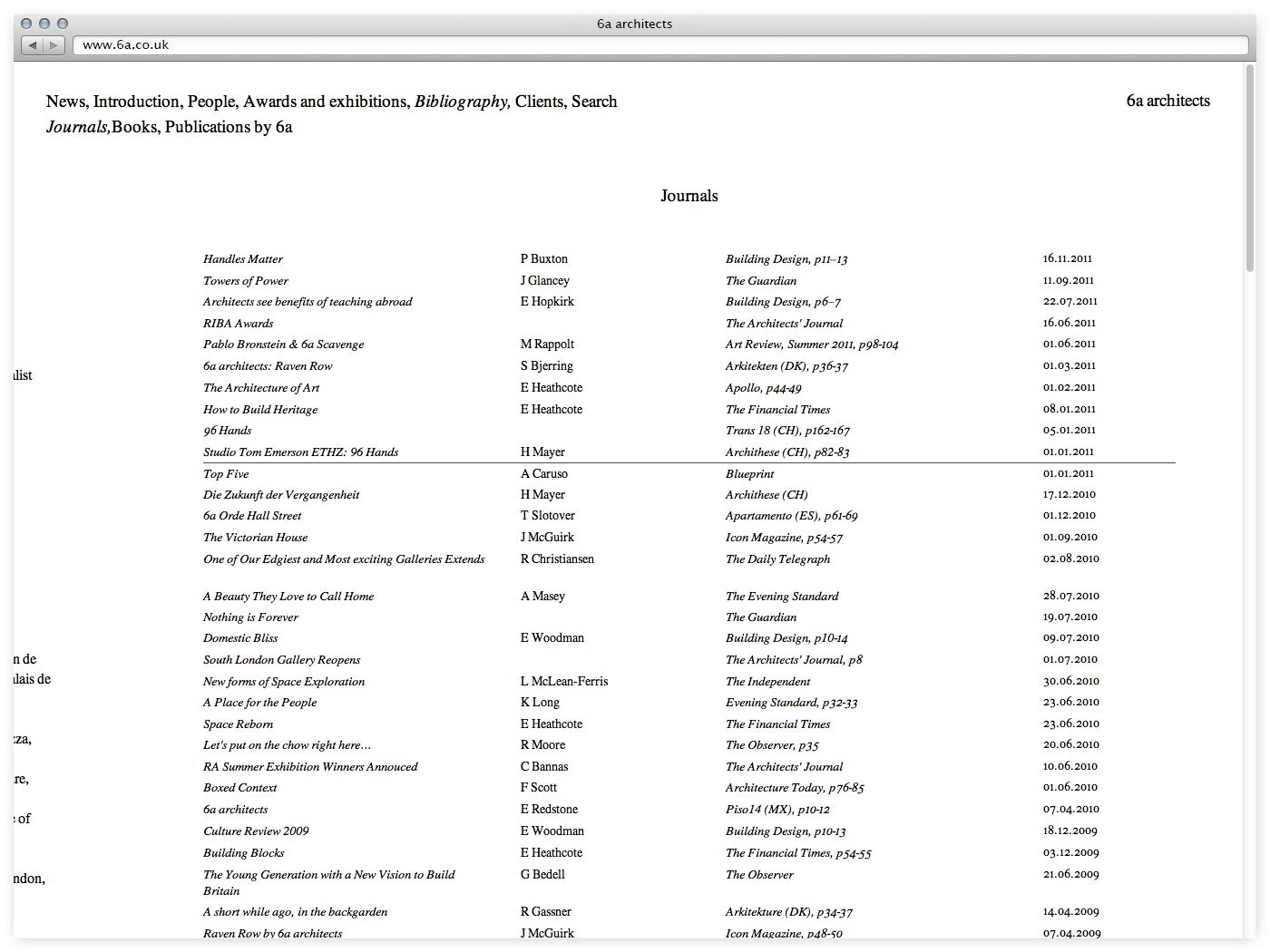 We began working with 6a architects during the development and construction of Raven Row gallery in 2009. Subsequently we have collaborated on numerous exhibitions in the gallery and designed a new website and graphic identity for the practice. Our design for ‘Never Modern’, the first book on their work and philosophy, can be seen here.