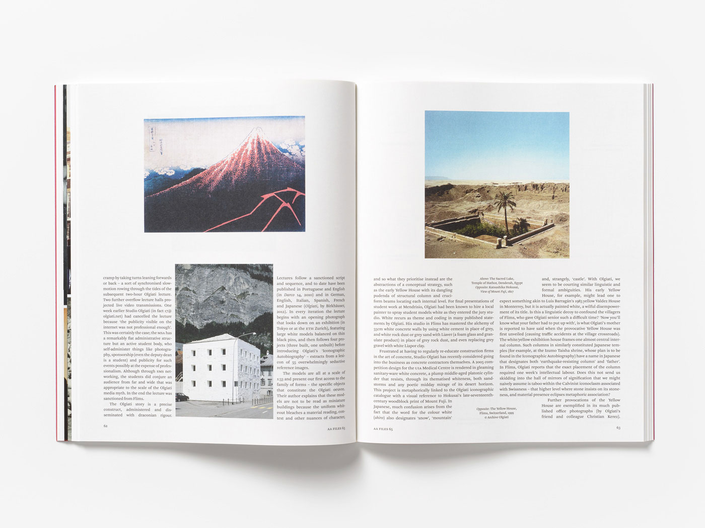 First published in 1981, AA Files is the Architectural Association’s journal of record. It contains essays and articles on architectural history and criticism, work by contemporary practitioners and designers, photography and art. It was redesigned by John Morgan studio in 2008, from issue 57 onwards.