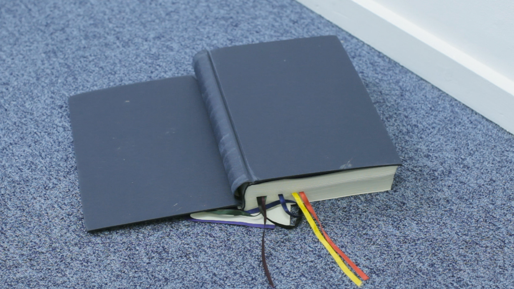 It’s a re-enactment of a meeting I had with a publisher and production team. This is how it really happened, all true, though you may find the ending unbelievable. It really did happen just as this film. By making this film, I wouldn’t need to tell the story again. My intention was to cast a young beautiful boy as myself, sadly the actor who turned up didn’t correspond to his photograph or the image of myself. So we see here the ritual abuse and “reading” of a blank book.’