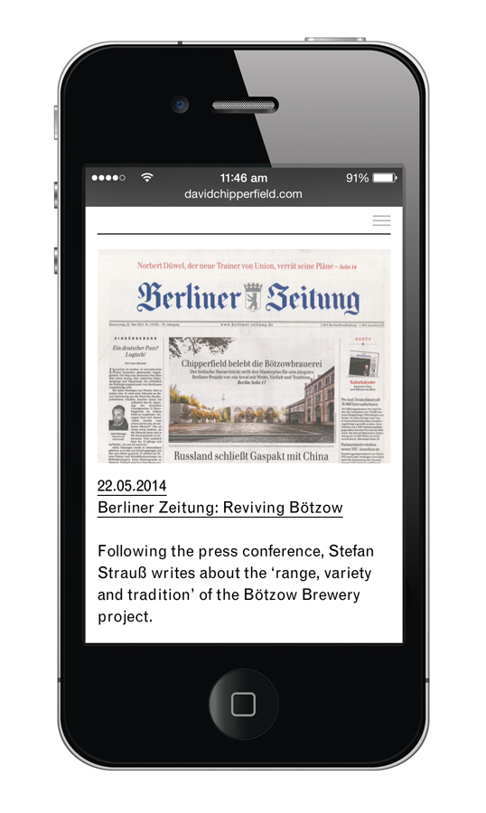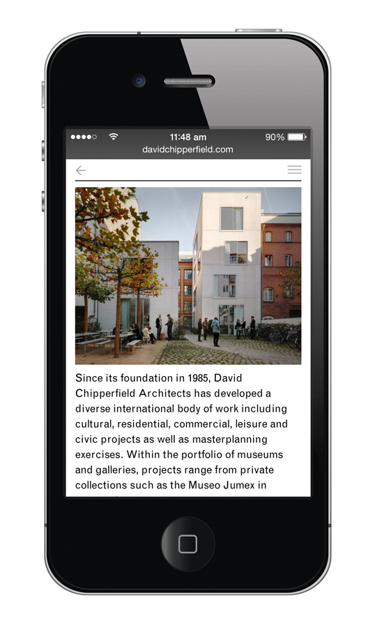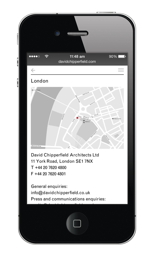 We produced a new graphic identity for the international architectural practice in 2008. The scope of works covered design of all printed and electronic matter for offices in London, Berlin, Milan and Shanghai. The extensive identity manual and the design of over 200 templates enables the practice to produce communication items sympathetically and efficiently in house. Our relationship continues with collaboration and consultation on many projects, including publications, exhibitions, identities, wayfinding and signage on buildings. Exhibitions include the Venice Biennale 2012, and ‘Form Matters’ at the Design Museum London 2009; publications include ‘Neues Museum Berlin’ (Walter König 2009) and a new monograph (Walter König 2013). Signage projects include Turner Contemporary, Café Royal, HEC Paris and Fundación/Colección Jumex. Key individual projects are displayed in their own project section within this site.