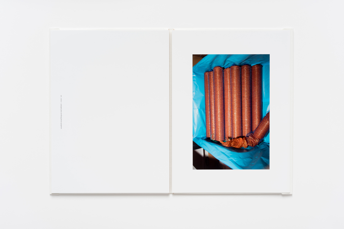 On opening the box containing the 2015 Ringier annual report, the reader is presented with two sausage casings. The materials the artist has chosen for the annual report book are thus clearly reminiscent of sausage making. There is the muslin, used to shape the sausage meat, and the greaseproof paper, used by the butcher to pack wrap the finished sausages themselves. The artist has also combined photographs taken during her visits to butchers in Switzerland with texts of her own.