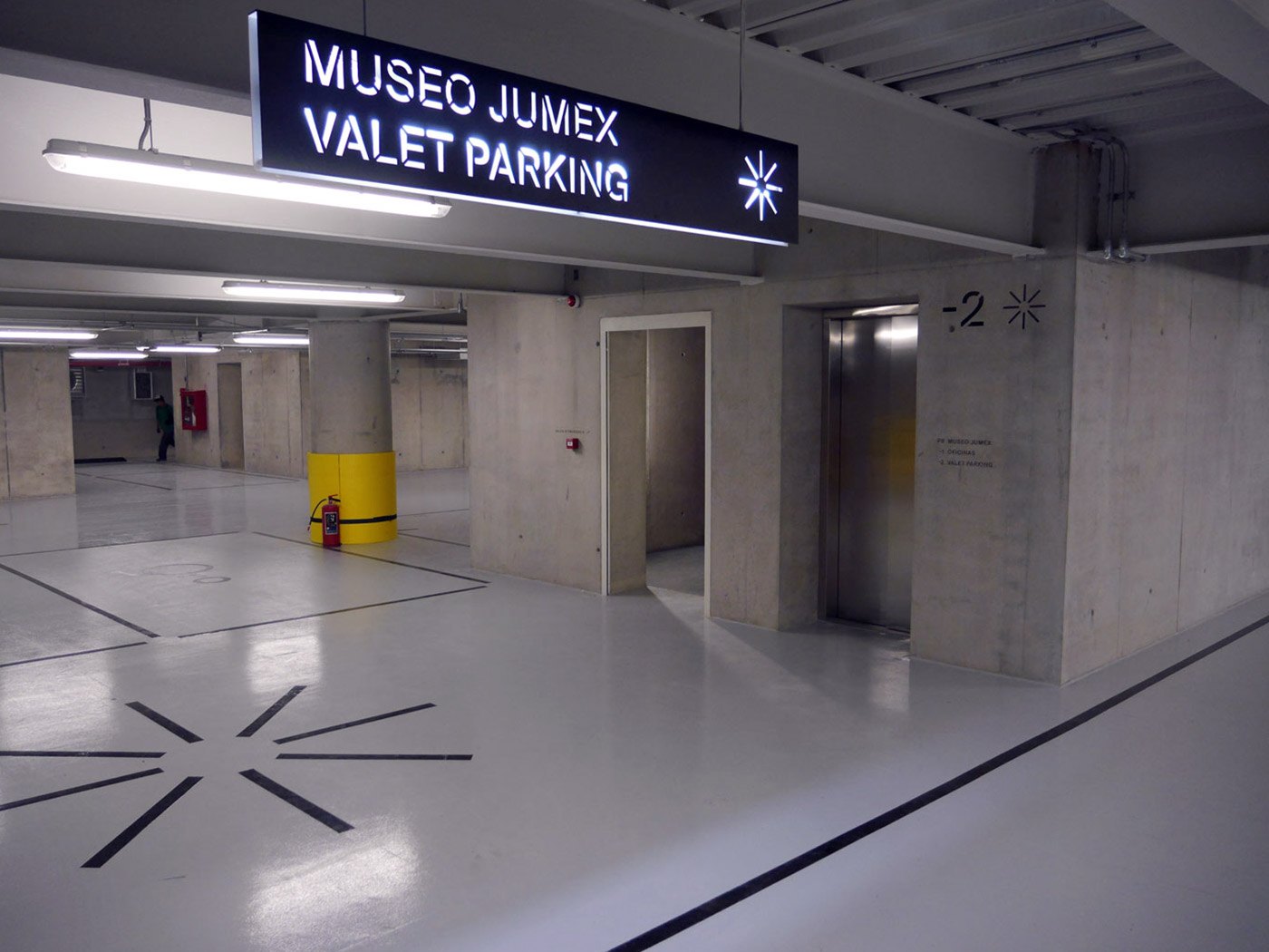 We worked closely with the museum’s in house team to create a graphic identity that extends through exterior and interior signage, exhibition announcement systems and advertisements to tickets and printed matter. We refined and developed the existing La Colección star symbol, the ghostly presence of which informed the bespoke Museo Jumex display stencil alphabet.