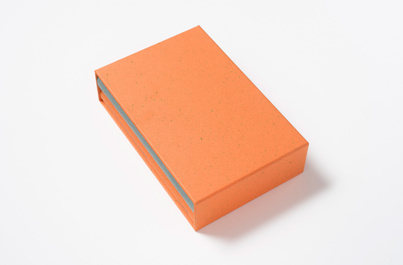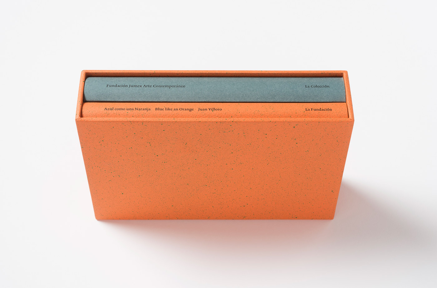 For the opening we designed a set of publications, ‘La Fundación / La Colección’, contained in a green paint-flecked orange case, inspired by Juan Villoro’s text ‘Blue like an orange’ (in turn inspired by a verse by Paul Eluard).