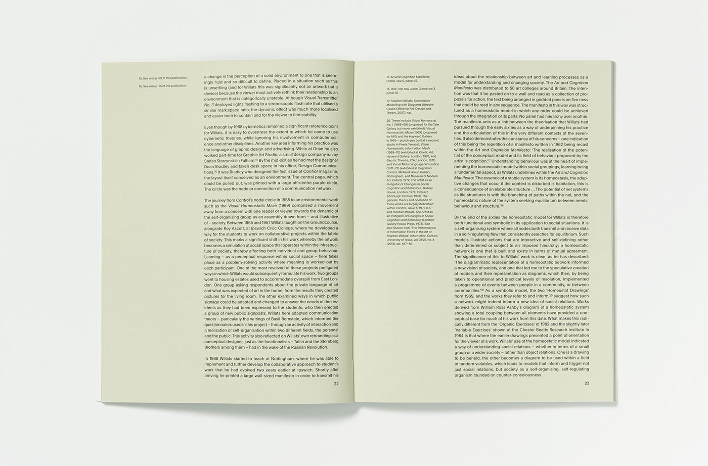 This is the first survey of work by Stephen Willats from the sixties. Willats (born and lives in London) was introduced to art as a teenage gallery assistant in 1958 and by 1962 was producing advanced artwork. He embraced the transdiscipli­n­arity of the time, juggling the roles of social scientist, engineer, designer and artist, and developed an art about social interaction, using models derived from cybernetics, the hybrid post-war science of communication.
