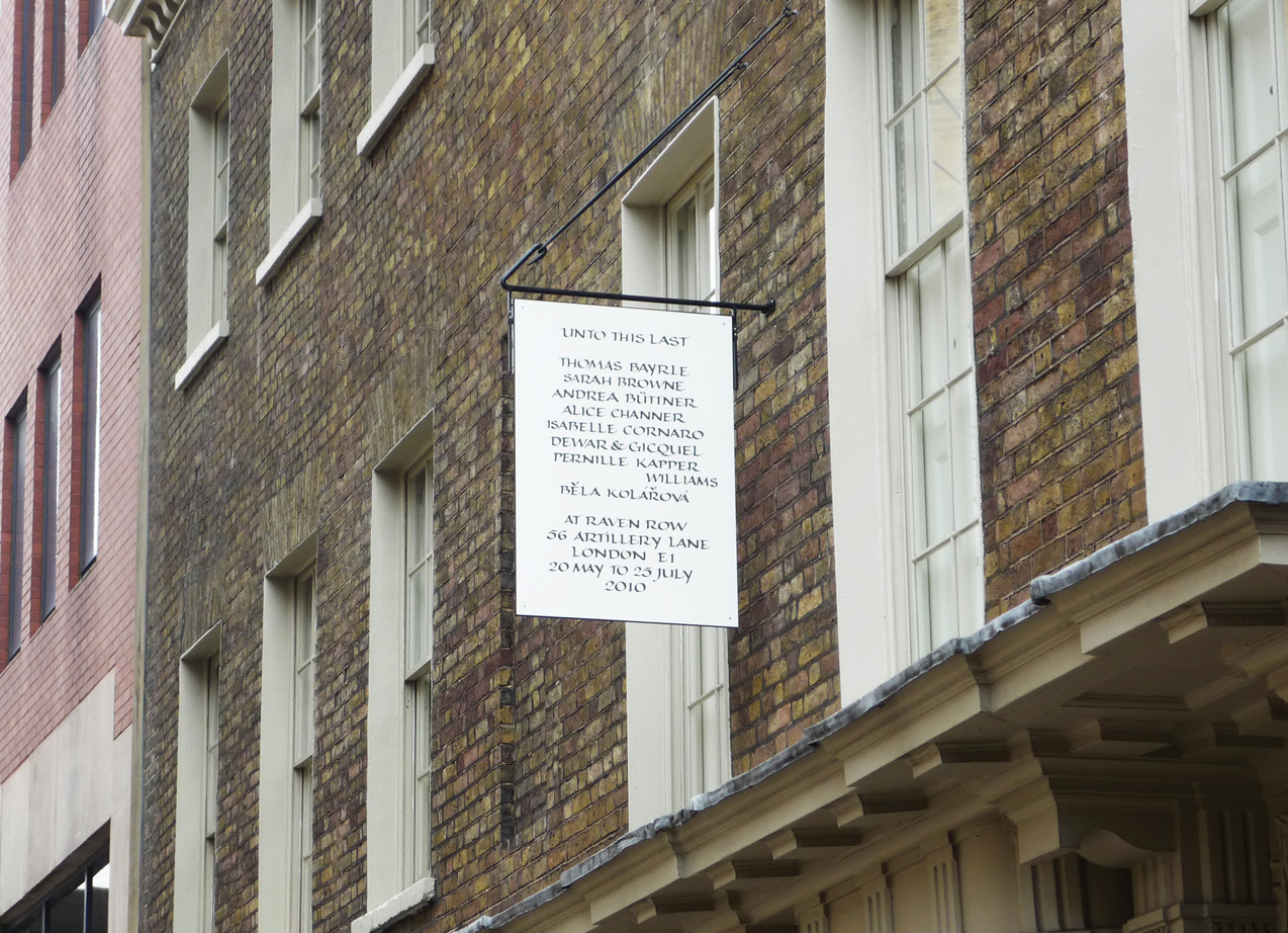 Lettering by Paul Antonio, composed and engraved into traffolyte sign board.