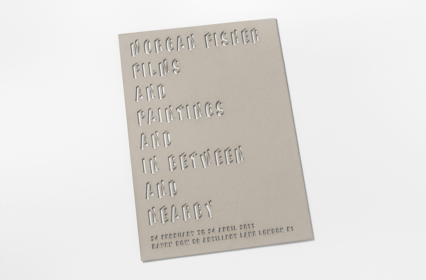 ‘This exhibition is the first to survey over forty years of the work of Morgan Fisher (born 1942, lives in Los Angeles). It is organised around the two major areas of Fisher’s work: his films – for which he first became known in the late sixties – and his work in painting, which began in the early nineties. The exhibition also includes installation work in film, painting and architecture, as well as video, photographs and works on paper.’ (Raven Row)