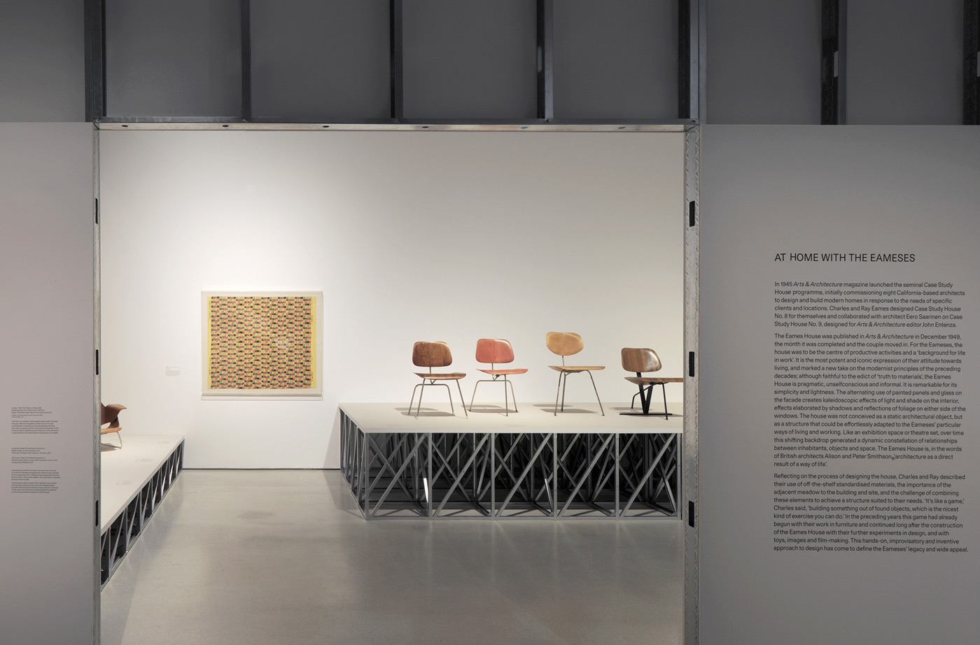 Structured thematically, the exhibition presents a complex portrait of these internationally celebrated designers in the context of the inner world of their Office and network, alongside the political, cultural and social conditions which enabled and influenced their work. The Eameses’ pioneering ‘multi-media architecture’ and preoccupation with different modes of visual communication, particularly film and photography as tools for modelling ideas, is foregrounded as the most vital and relevant legacy of their oeuvre. These ground-breaking installation projects were developed for both corporate and government clients and aimed to popularise burgeoning computer technologies or present visions of America at home and abroad in the context of the Cold War. An in-depth look at the Eameses’ pedagogical work and self-initiated projects reveals an enduring interest in learning and creativity and their fascination with diverse cultures, modes of play and rituals. The exhibition also addresses Charles and Ray Eames’ impact on 20th century concepts of modern living: their editorial ‘eye’ and mastery of form and material yielded some of the most iconic designs of all time, not least their own home – a construction continually celebrated since its completion in 1949. (Barbican)
