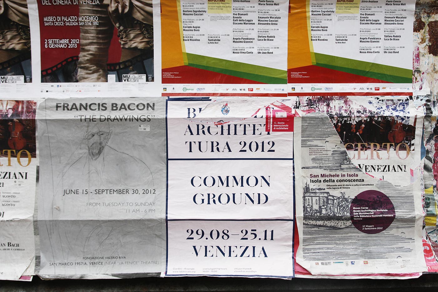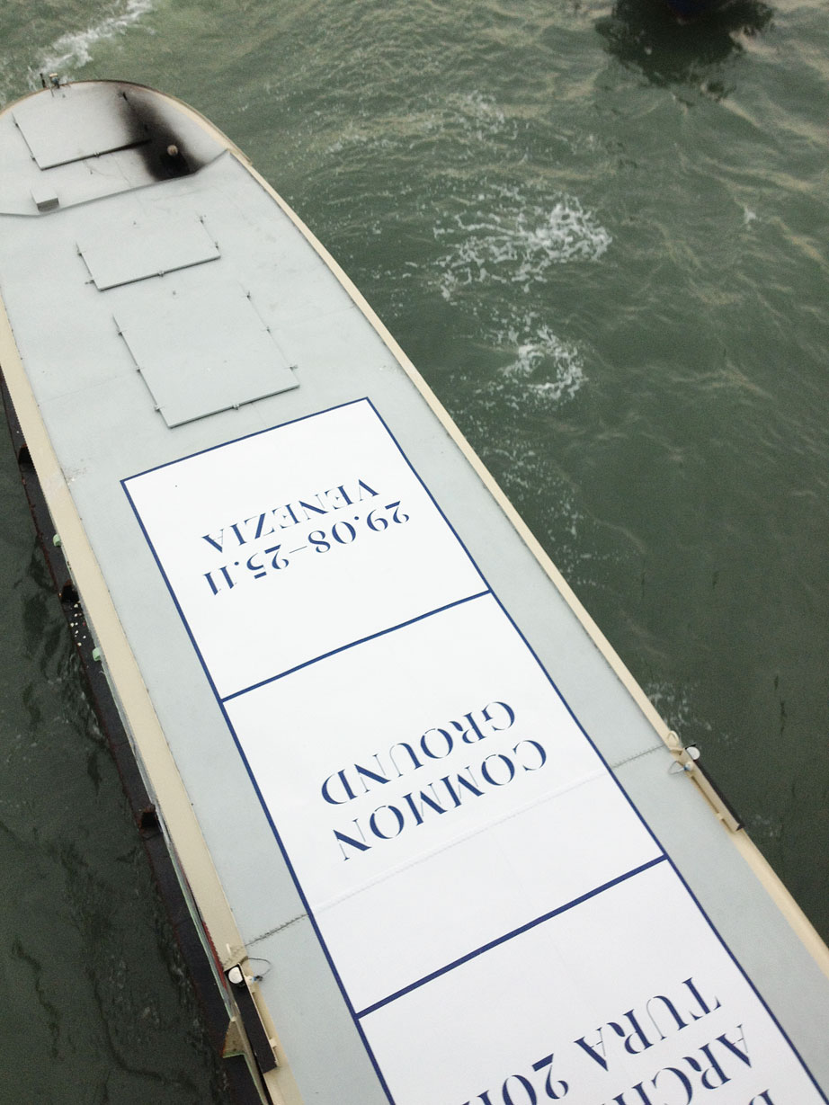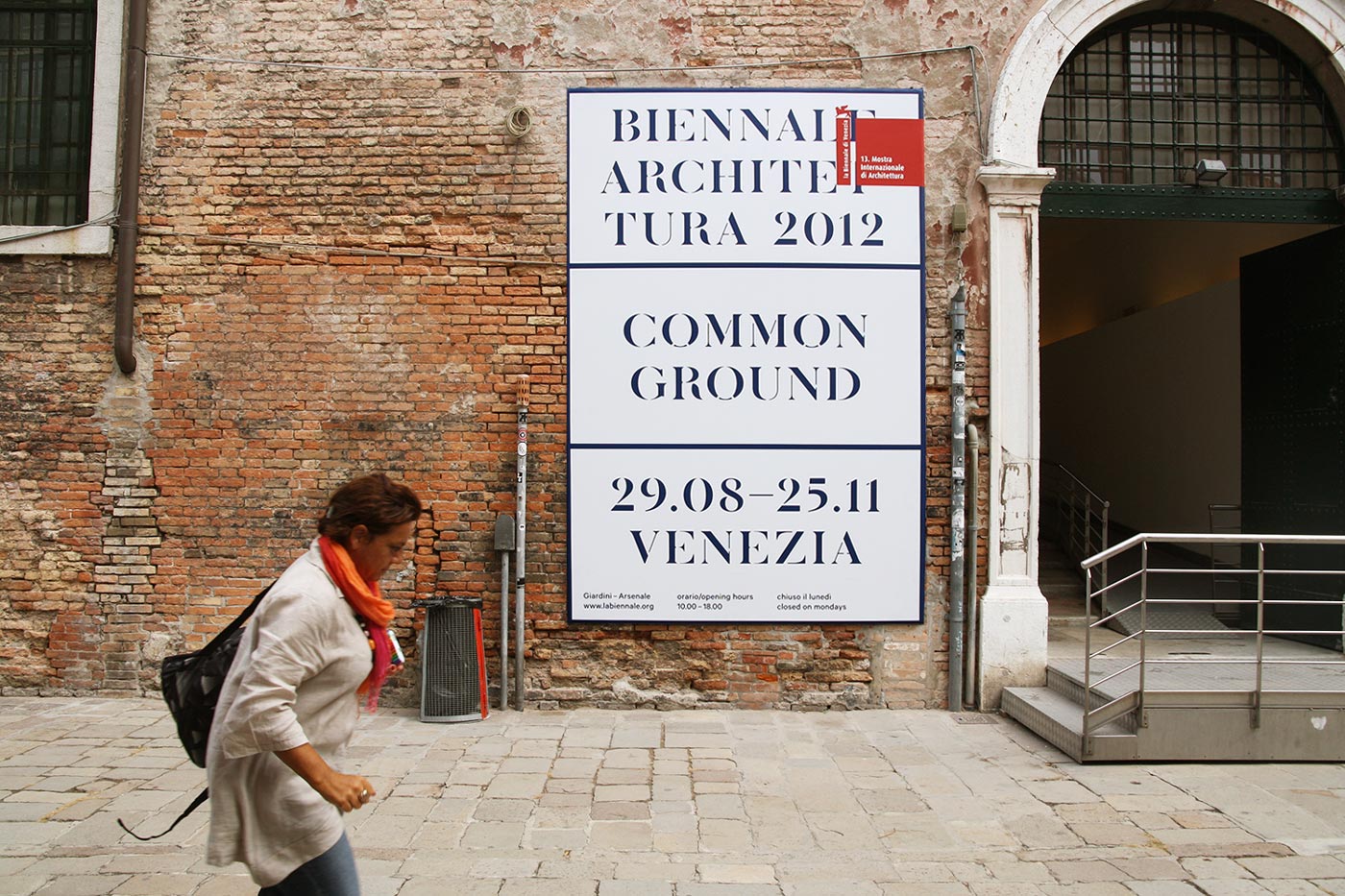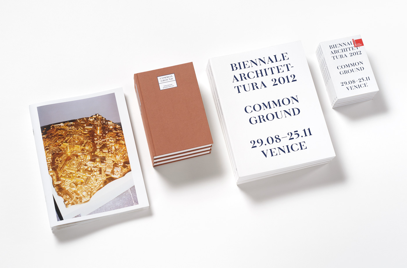 These forms were irresistible to me when David Chipperfield, the Director of the 13th Venice Architecture Biennale, invited my studio to create a graphic identity for “Common Ground”. The body of work spanned across four publications, exhibition graphics, signage, posters, printed matter and more uniquely banners for bridges and wraps for Vaporettos. The theme Common Ground celebrated interconnected architectural culture and explored the things architects have in common, from the conditions of practice, to influences, collaborations and histories.’ (John Morgan, Eye magazine). Read more.